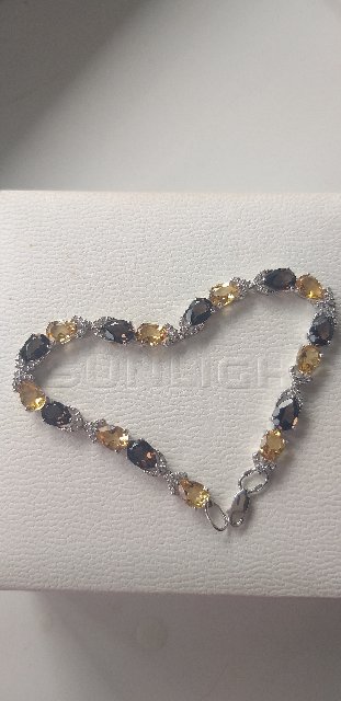 Серебряный браслет с фианитами, раухтопазами и цитринами природными