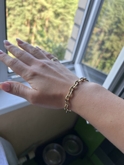 Стильный, современный дизайн, отличное качество, маломерит, так как крупные звенья, берите на размер больше.