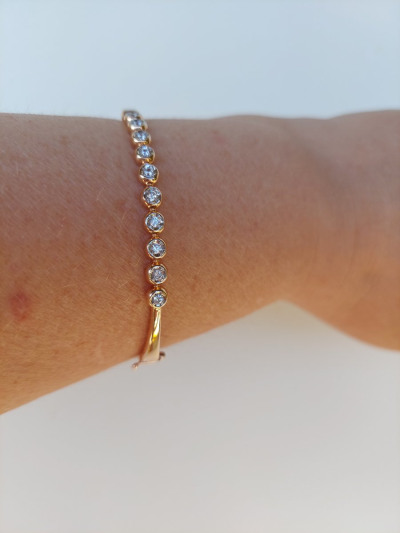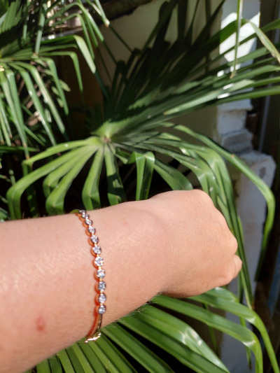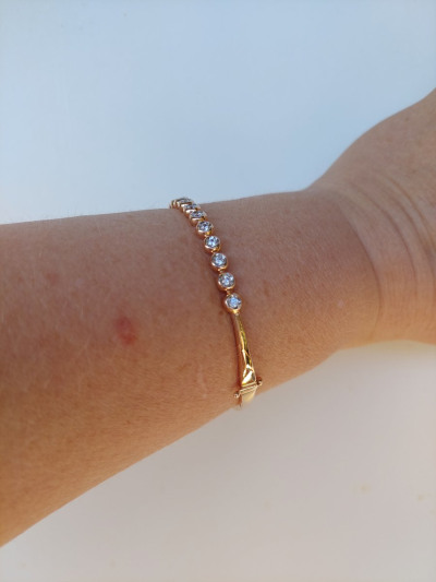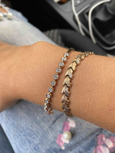 Браслет по очень хорошей цене. Классика! Из моды не выйдет. Фианиты красиво блестят. Застежка при ношении не растегивается, но зацепиться ей можно ,немного неудобно слелана. Можно ее подтянуть у ювелира. Брасле отличный! Спасибо!