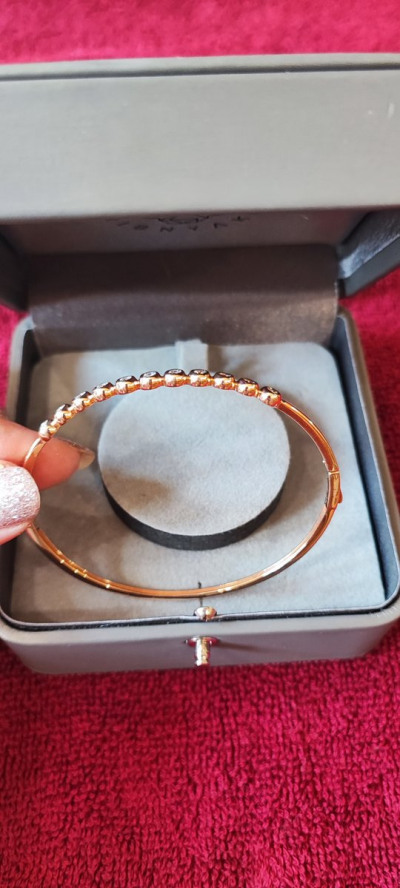 Милый браслетик, подарок от мужа. Размер 17, на руке свободно болтается. Хотела чтоб сидел плотно. На застежку пока жалоб нет. Может со временем ослабнет, не знаю. В целом красиво, я довольна!