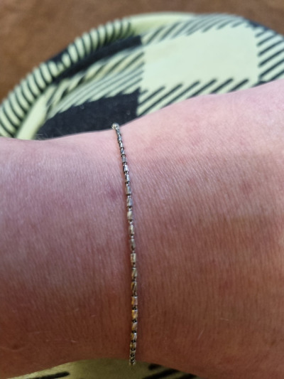 Браслет замечательный, очень лаконично и аккуратно смотрится, единственное очень непрочный, порвался в первый день покупки, пришлось поменять, ношу осторожно)