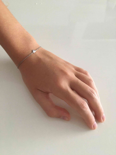 Заказывала дочери 10ти лет. на ручке очень аккуратно смотрится! сердечко не перекручивается. Носит не снимает, он совершенно не мешает и не ощущается!