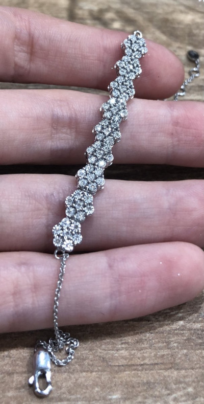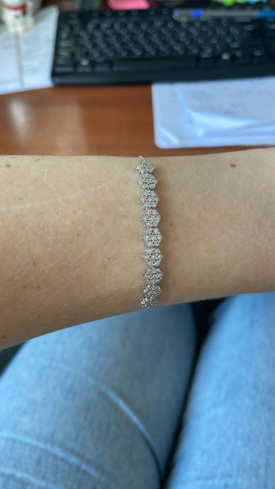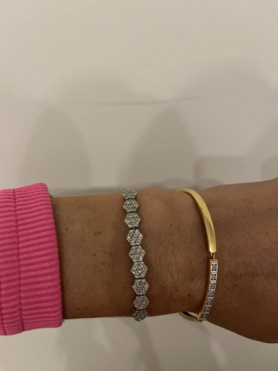 Браслет шикарный. Искрится за счет бриллиантиков и очень деликатной алмазной огранкой золота вокруг камней. В носке удобен.