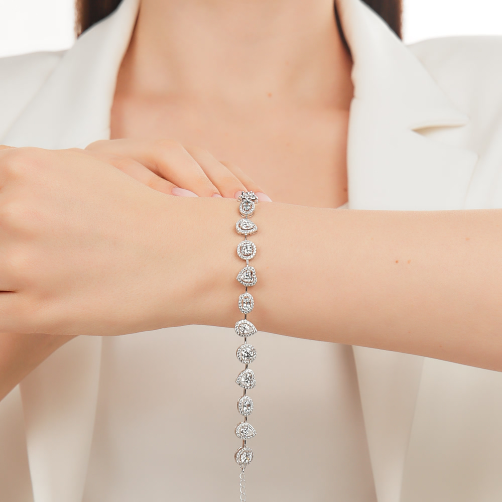 Серебряный браслет с фианитами и топазами природными