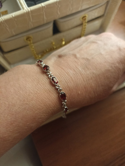 Очень милый красивый серебряный браслет с гранатом, хороший дизайн, хорошо сидит на руке, не переворачивается, гранаты красивые, насыщенного цвета, покупкой довольна. рекомендую