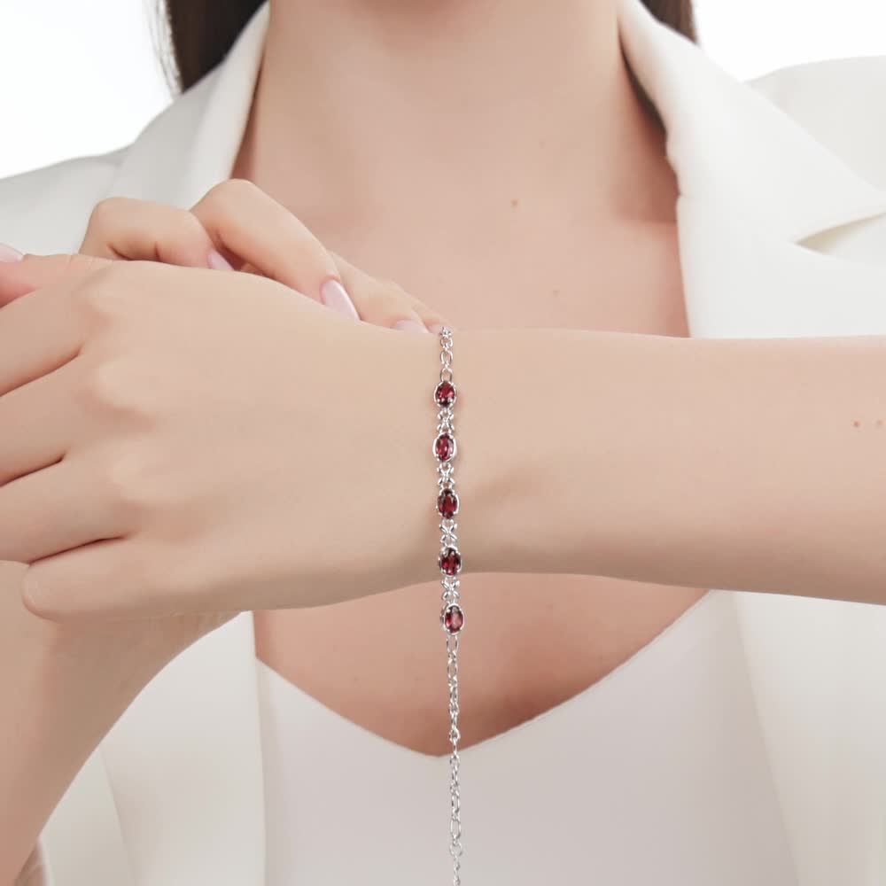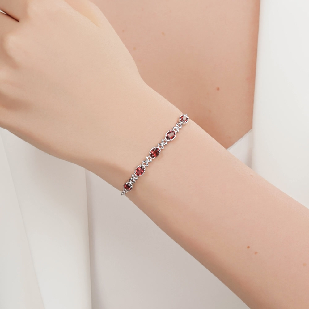 Серебряный браслет с гранатами природными