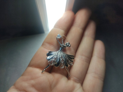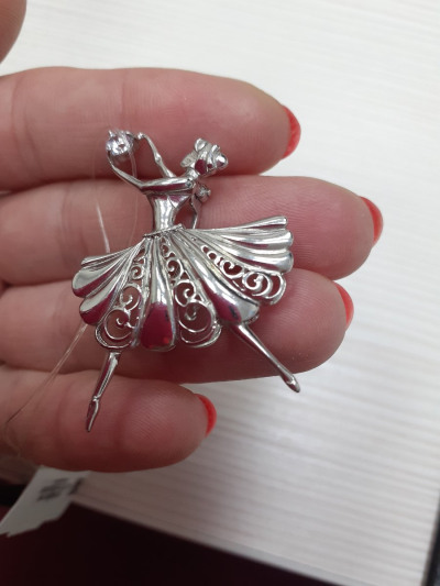 Серебряная брошь в виде танцовщицы. Очень изыскано и нежно!