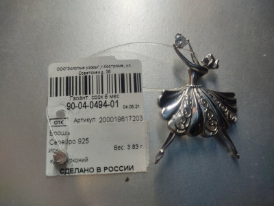 Великолепная брошь, в виде балерины, выглядит очень элегантно и благородно. Безупречная , тонкая работа!