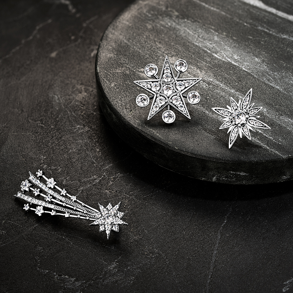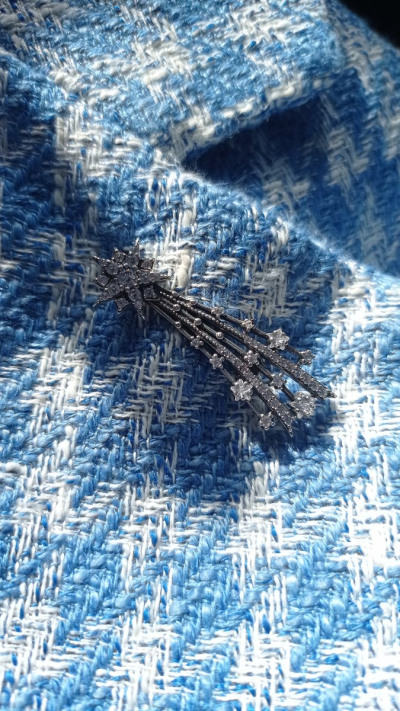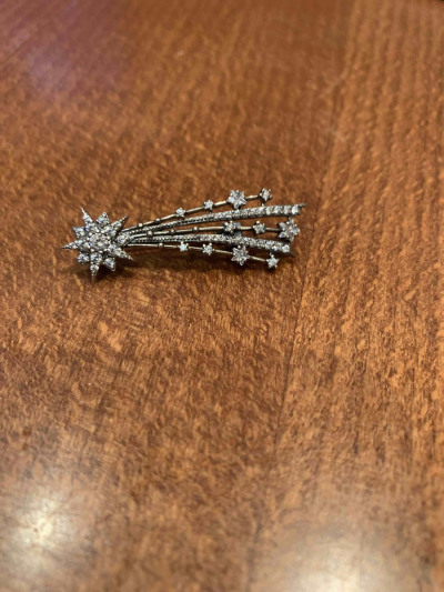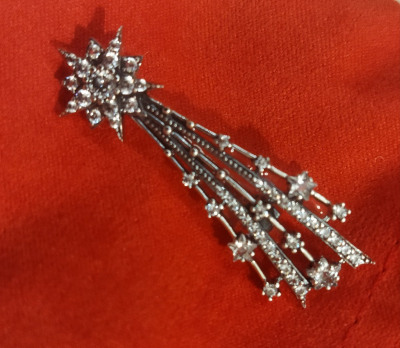 Брошь в прекрасном исполнении. сверкает, дает отсылку к коллекции украшений Шанель Комета. По весу не тяжелая, хорошо можно носить на легких тканях