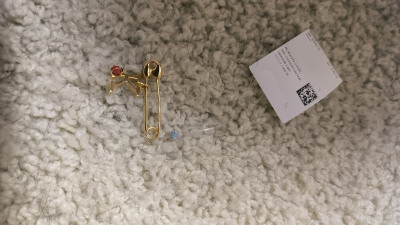 Симпатичная булавочка, позолоченное серебро. Милейшая букашечка, покрытая эмалью. Не большая и не маленькая. Рекомендую.