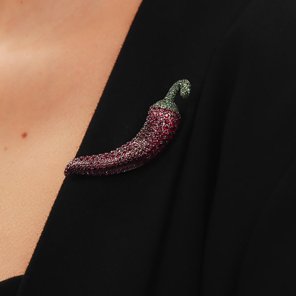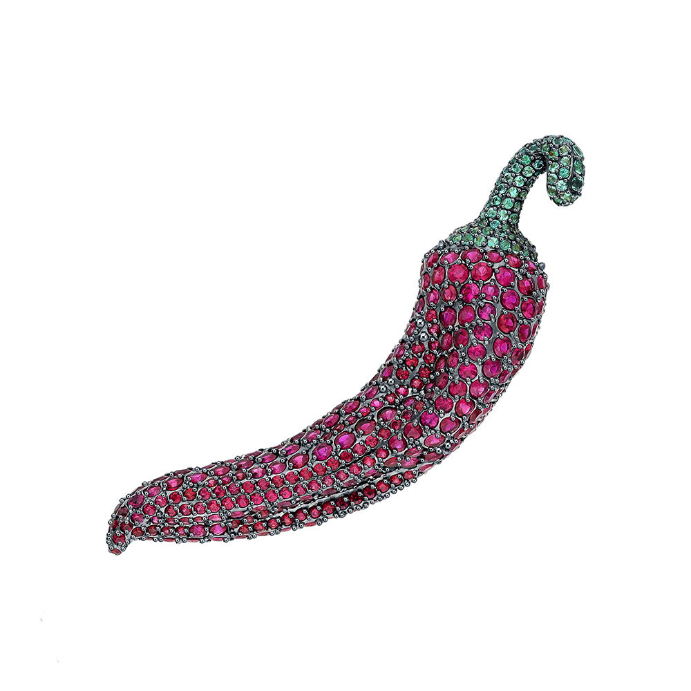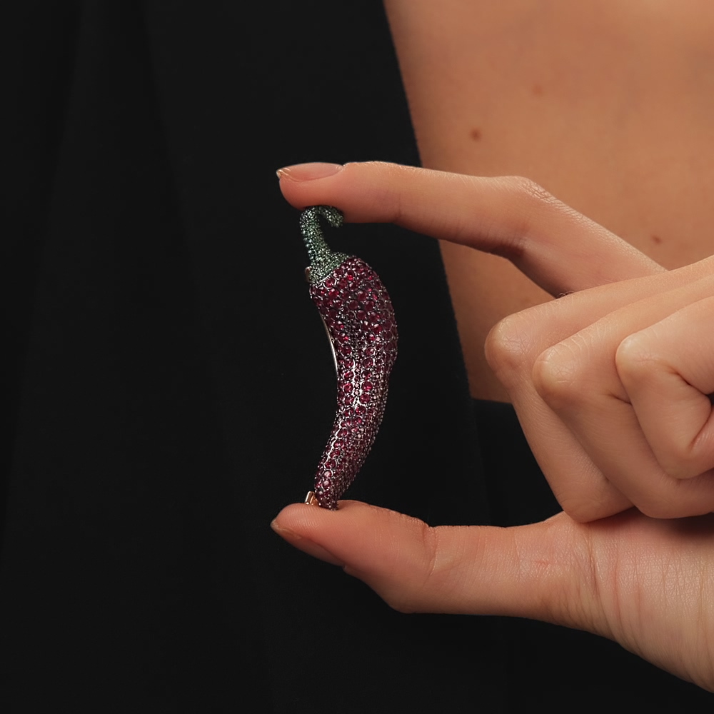 Брошь с 124 рубинами природными, 5.06 карат, цвет 2, чистота 2, тип огранки В;