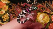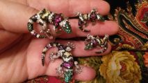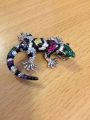 Серебряная подвеска-брошь "Ящерка" инкрустирована цветным корундом с универсальной застежкой, которая позволяет приколоть на лацкан пиджака, куртки, жакета, платья или носить как подвеску на цепочке. Подарил жене, которая была счастлива, ей очень понравилось, особенно когда она в комплекте с кольцом и сережками