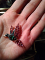 Очень красивая брошь. На экране компьютера родолиты выглядят в красных тонах, а на самом деле они сиреневые. Смотрятся наяву эффектно. Мне очень нравится брошь. Спасибо