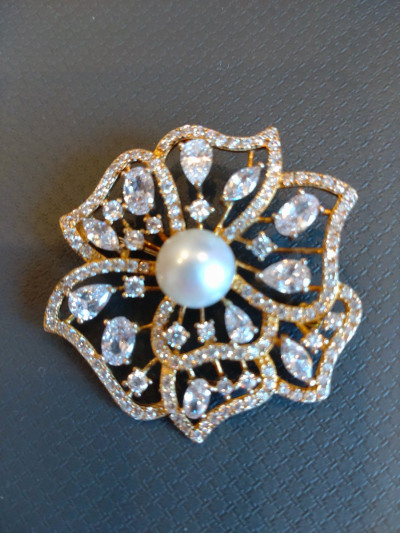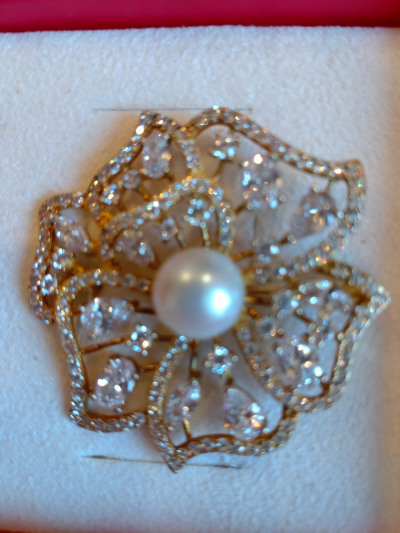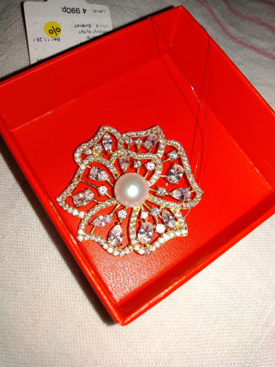 Брошка большая и заметная. Фианиты блестят и обрамляют жемчужину! Очень праздничная!