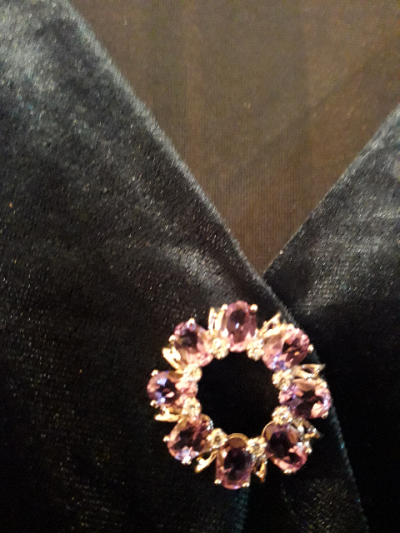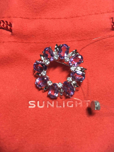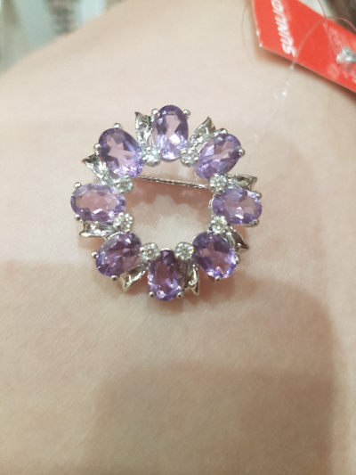 Купила любимой подруге и куме на день рождения - юбилей памятный подарок - брошку с самоцветами - аметистами и фианитами.
