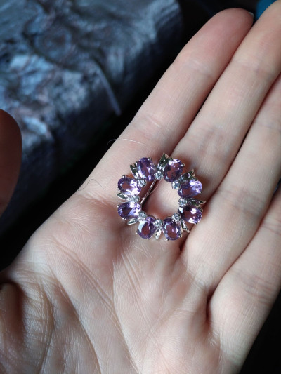 Серебряная брошь с аметистами природными