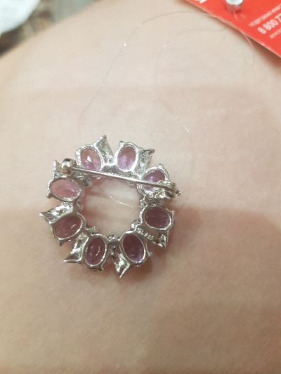 Купила на 8 марта маме. Очень красиво смотрится на шейном платочке, на однотонной рубашке или платье. Сделана качественно, камушки в процессе носки не выпали.