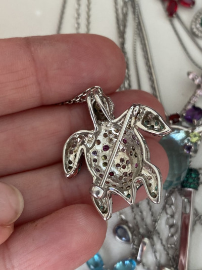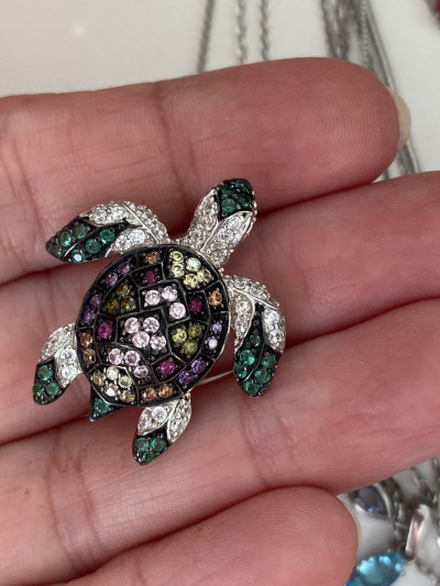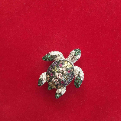Добрый день! Подарок был для подруги, прошло уже около 5-7 лет, черепашка цела и невредима. Застежка, камни все целое, цвет не изменился. Спасибо!