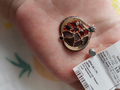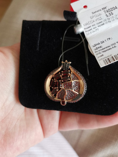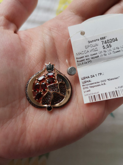 Долго смотрела на эту брошку, очень нравилась она мне и тут в приложении можно стало списывать бонусы и цена стала приемлема да ещё и в наличии одна в моем городе, отличный подарок получился на новый год, в живую брошь ещё лучше, гранаты насыщенного цвета, камни красиво играют на солнце, покупкой очень довольна