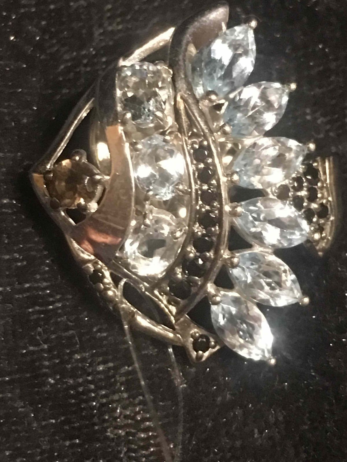 Брошь с топазами и раухтопазом смотрится хорошо, интересно,камни красиво переливаются,натуральные.крепление у броши особенное,не как булавка,поэтому на тонкую ткань не подойдёт. Только на пальто или плотную ткань.