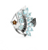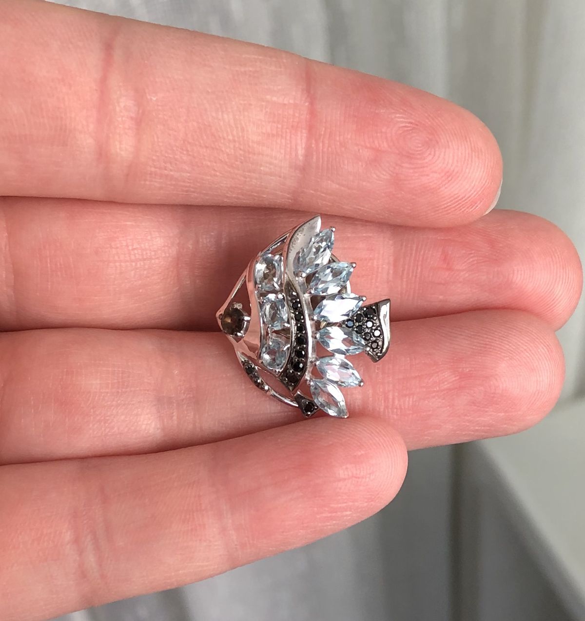 Серебряная брошь "РЫБКА" с голубыми топазами, раухтопазом и фианитами