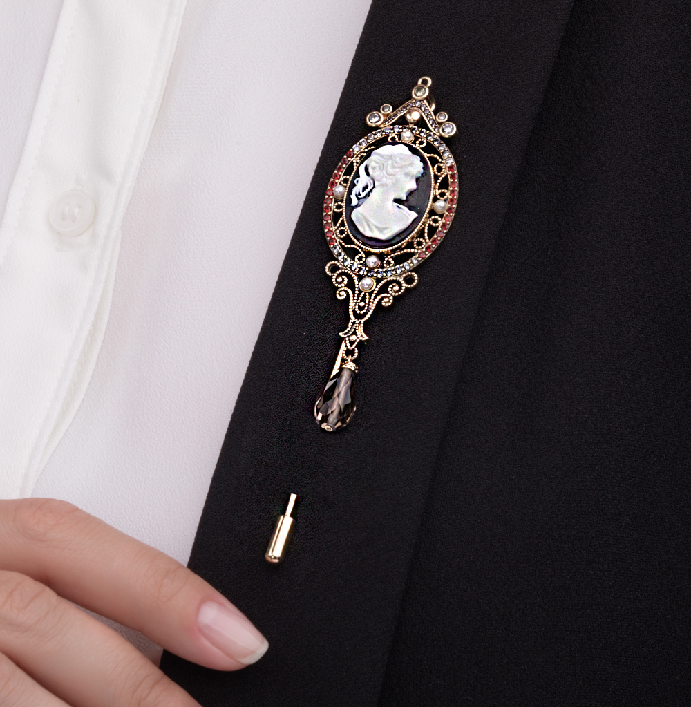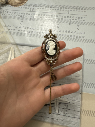 Купила себе в коллекцию. Давно хотела брошь-камею. На лацкане пиджака смотрится великолепно.