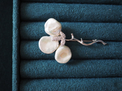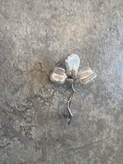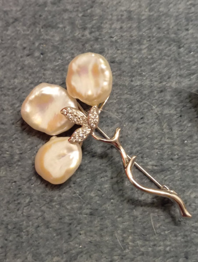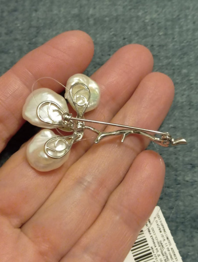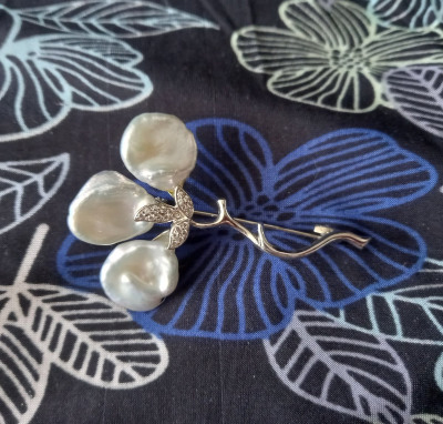 Брошка с жемчугом неправильной формы (барочный жемчуг) в виде цветка очень красивая и необычная. Сначала сомневалась, но когда посмотрела живьём, поняла, она обязательно должна быть в моей коллекции! Крупная