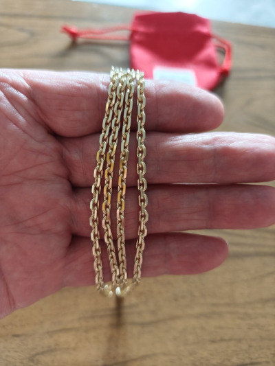 Очень красивая цепь, полновесная, с хорошим замком. Любимая вещь, ношу не снимая.