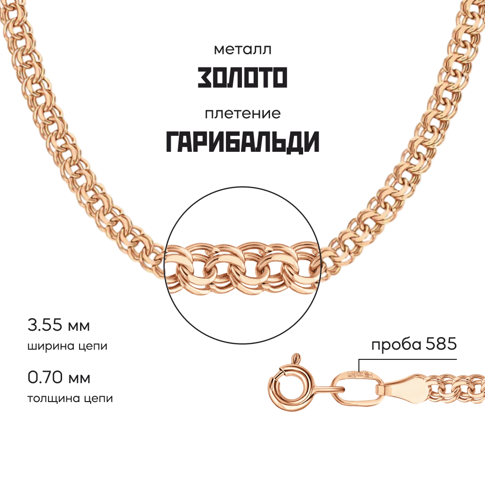 «Гарибальди» — объемное якорное плетение с парными круглыми звеньями, считается высокопрочным и одним из самых надежных. Плетение названо в честь супругов Гарибальди, героев освободительного движения Италии, которые всегда были вместе и разделяли взгляды друг друга.