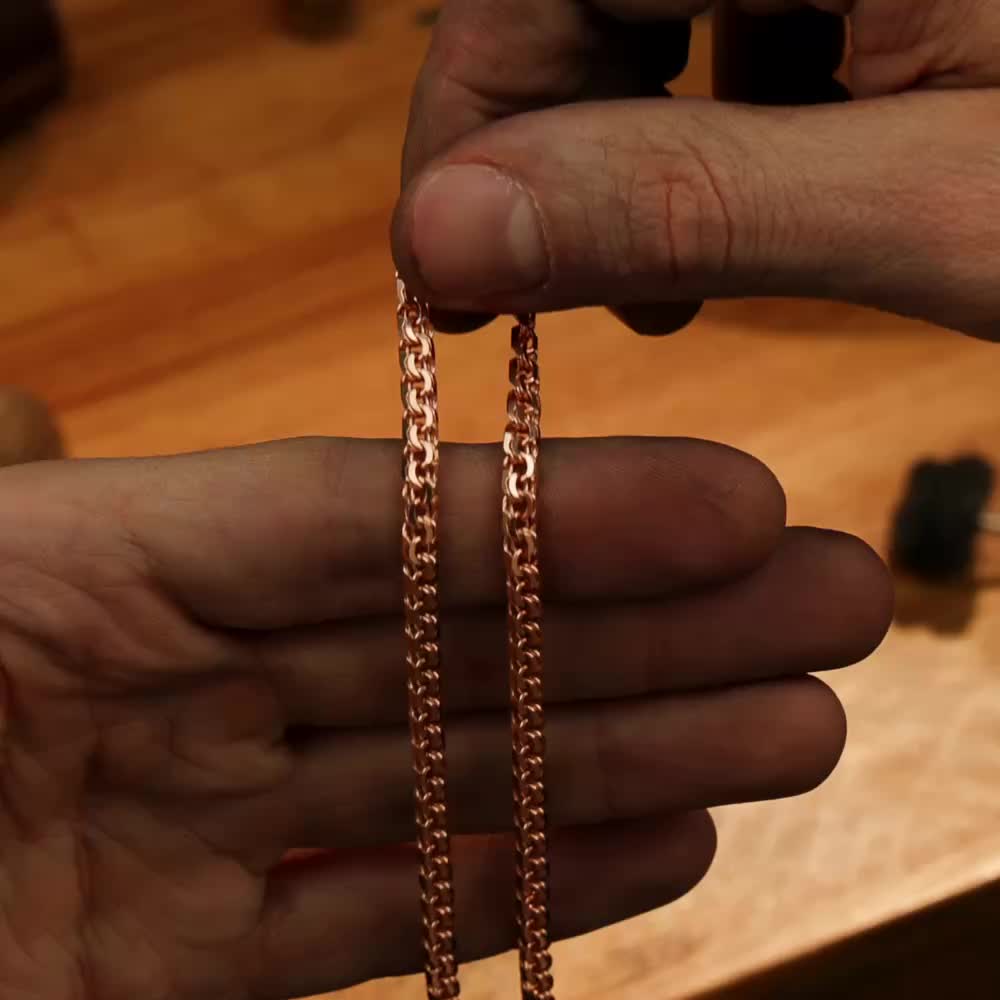Цепь огонь! Полновесная, тяжёленькая, что не мало важно, особенно когда есть маленькие детки, которые могут схватить. Моя цепь тест драйв от маленькой дочи прошла успешно!!! К покупке рекомендую!!!!