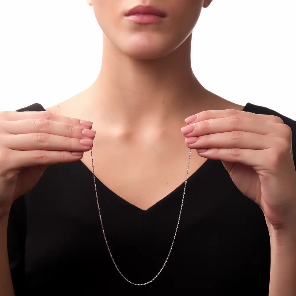 Звенья соединены между собой таким образом, что цепь начинает красиво переливаться. Сложная спиралевидная структура обеспечивает блеск при вращении в лучах света.