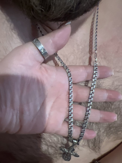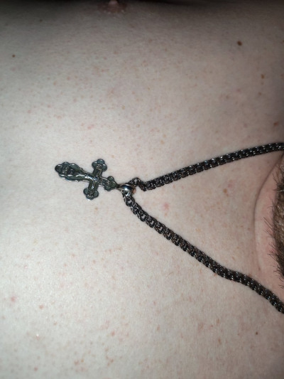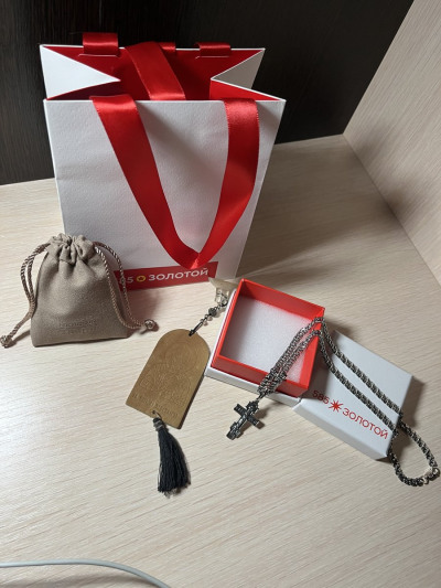 Цепочка отлично подошла к крестику. Сделана добротно. Не пустая. Плетение немного черненое.