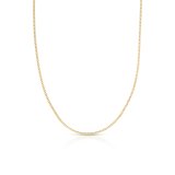 Тоненькая , что придаёт особый шарм . Цепочка блестит , дёлтое золото очень красивое . Ношу с подвеской крестиком .