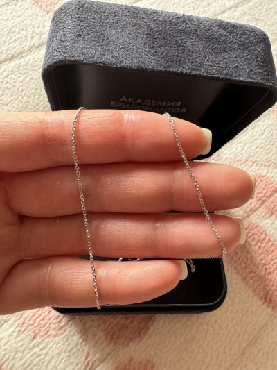 Красивый перелив огранки звеньев цепи.Самое надежное,прочное плетение.Выглядит достойно,не слишком тонюсенькая,а нежнпя ,изящная ,куплена для молодой девушки.