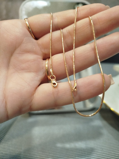 Золотая середина, не тонкая и не толстая. Прочная. С любым кулоном смотрится 🔥 Замочек надёжный. Весомая, полновесная. Для Снейка оптимальная длина 40, заломы маловероятно, что будут.
