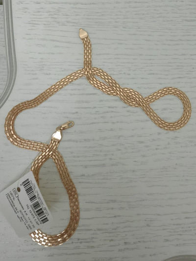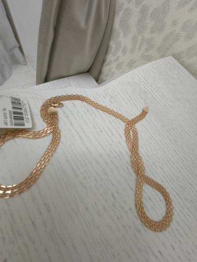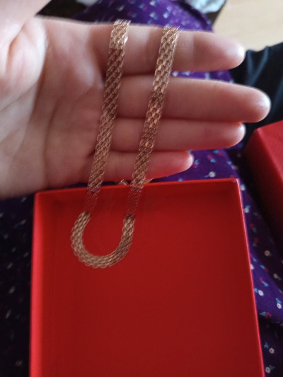 Шикарное колье из золота, вес 15,5 грамм, плоское и самое широкое плетение, блестит нереально. Бабушка дарила мне аналогичное 20 лет назад на свадьбу, в магазине обменяла его на аналогичное плетение. То есть эта модель классика, актуально будет во все времена.