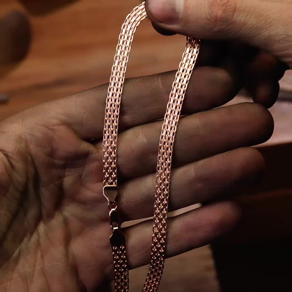 Плетение "Бисмарк" - надежное соединение звеньев якорного типа. Самодостаточное украшение, которое идеально подходит женщинам. С цепями данного типа необходимо обращаться особенно аккуратно, во избежание образования заломов. Рекомендуем снимать украшение перед сном.