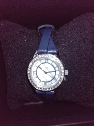 Фото не передаёт всей красоты.Циферблат перламутровый, красиво переливается, кристаллы по кругу утоплены в корпус.
