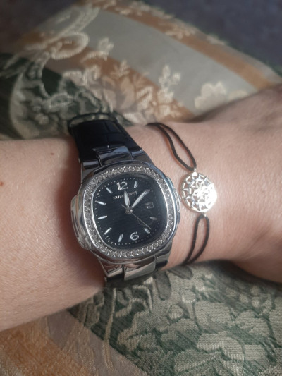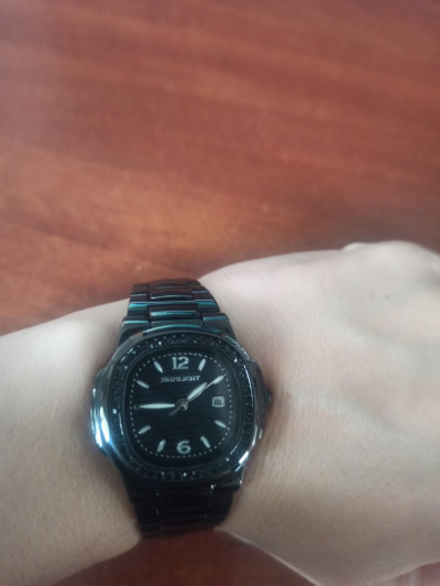 Часы изящные черного цвета со стразами. Ношу каждый день. Очень довольна
