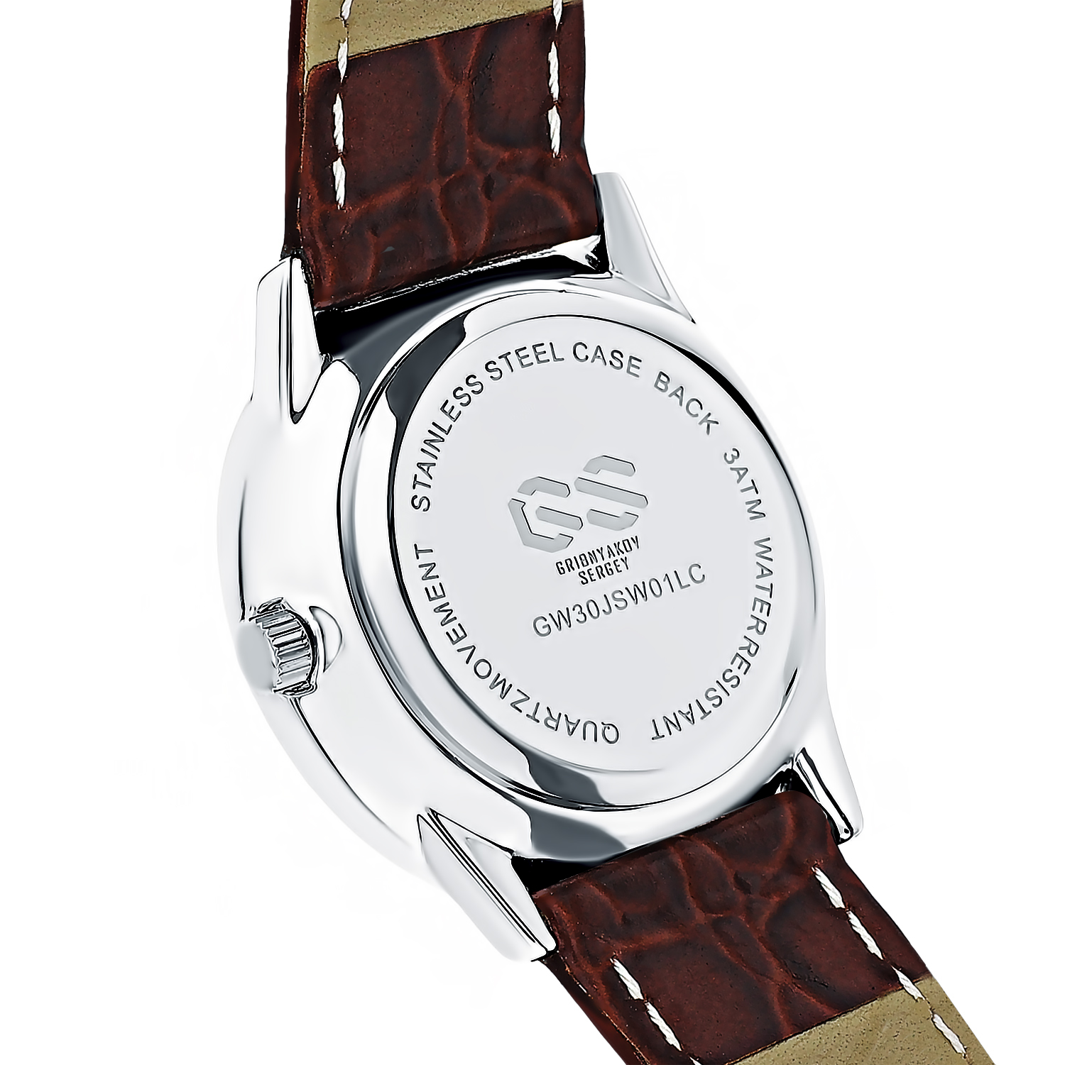 В данной модели часов корпус выполнен из серебра 925 пробы. Для обеспечения прочности и гипоаллергенности задняя крышка выполнена из стали 316L.