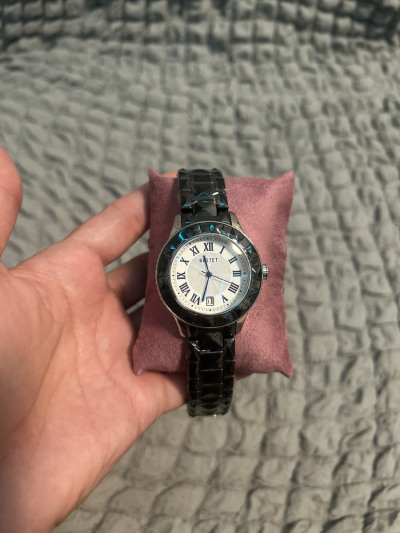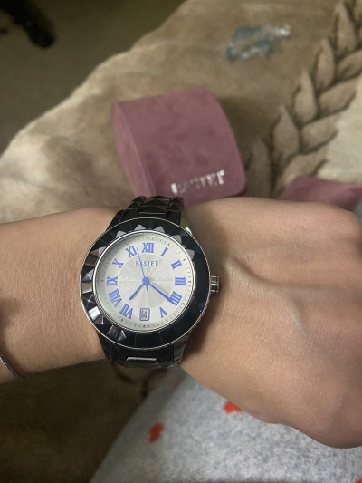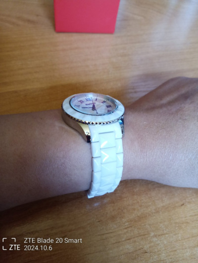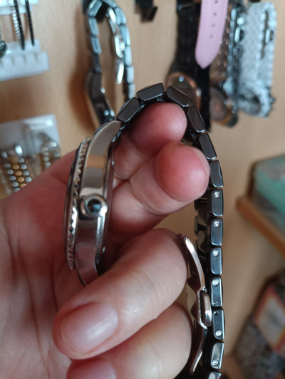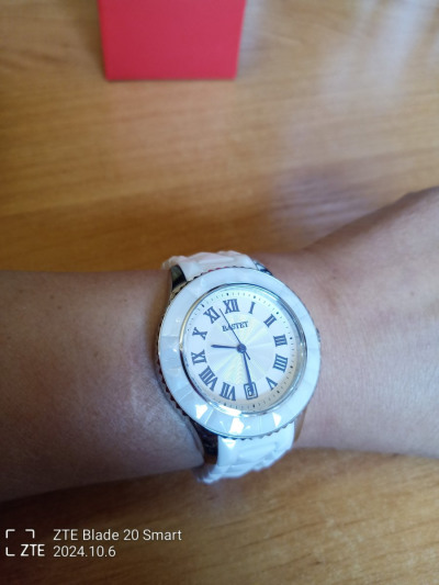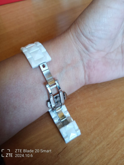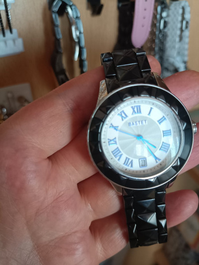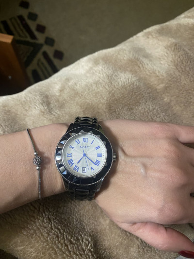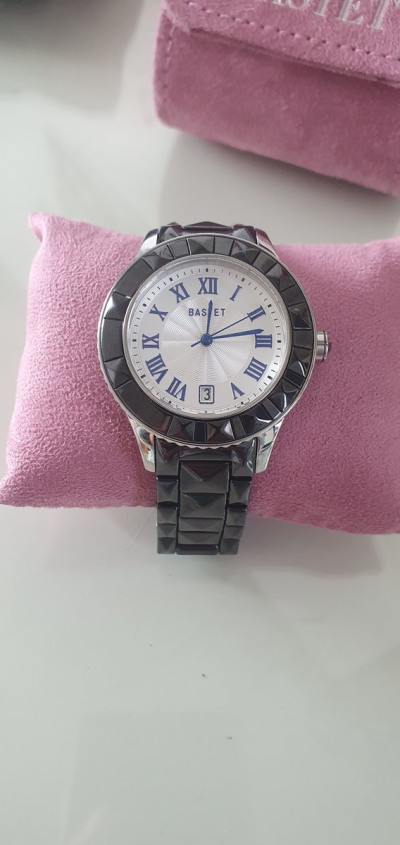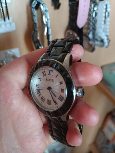 Часы женские,немного тяжёлые.Браслет металокерамика,но смотрятся на руке круто.