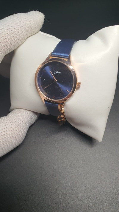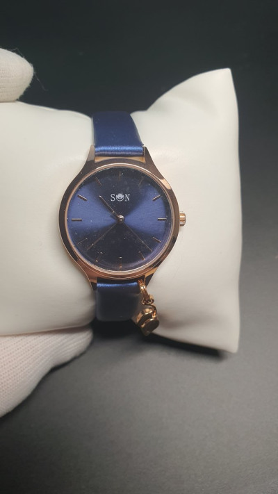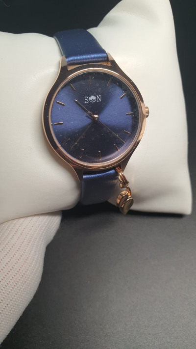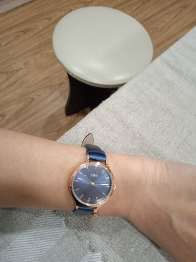 Стильные часики под розовое золото с синим циферблатом и ремешком. Простенькие и недорогие. Смотрятся очень хорошо. Рекомендую.