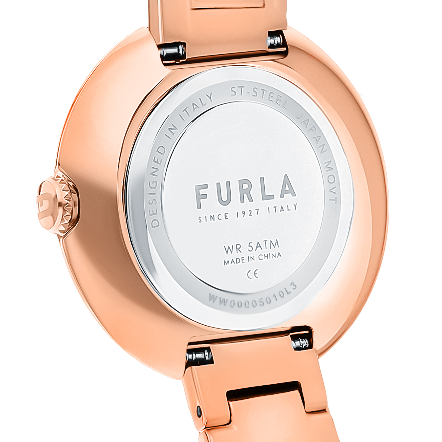 Женские наручные часы FURLA модель WW00005010L3 из коллекции FURLA HERITAGE. Японский кварцевый механизм Y120 SEIKO (TMI) использующий элемент питания SR626SW. Стальной корпус размера 32 мм. Минеральное стекло. Стальной браслет. Водостойкость 5 АТМ (мытье рук, дождь). Бренд Furla (Фурла) был основан Альдо Фурланетте в Болонье (Италия) в 1927 году. Сегодня, как и в начале своего пути, бренд продолжает свое дело – создает великолепные изделия, основываясь на традиции мастерства, опыте, приверженности новаторству и чувстве прекрасного. Вся продукция бренда, будь то сумки, обувь или аксессуары, обладают высочайшим качеством и современным итальянским стилем. Страна-изготовитель: Китай. При изготовлении используются только надежные Японские механизмы. ВНИМАНИЕ! Заявленная водостойкость гарантируется только при плотно закрытой или закрученной заводной головке!