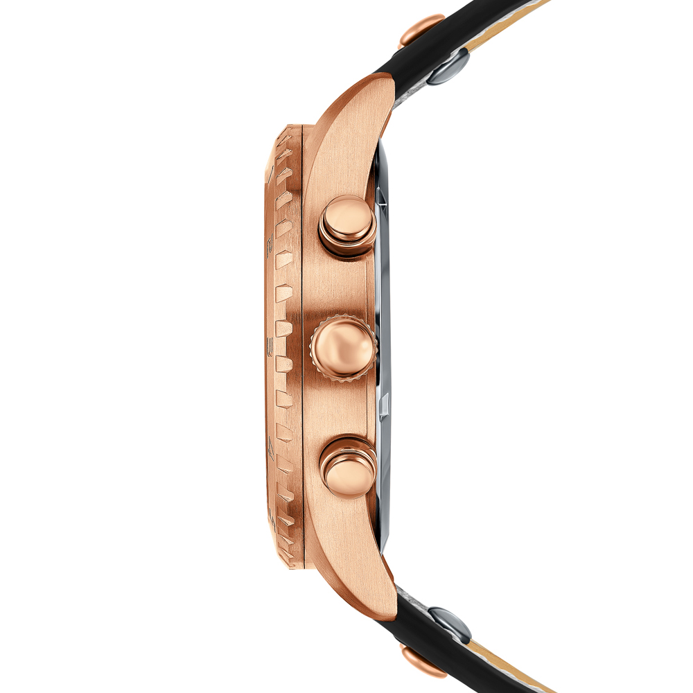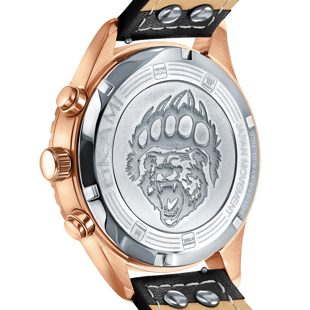 Корпус выполнен из стали, минеральное стекло с антибликом защищает циферблат от внешнего воздействия. Японский кварцевый механизм Miyota OS00 обеспечивает точный ход и оснащен функциями времени в 12 часовом формате, секундной стрелки, даты, дня недели и хронографа. Водозащита 10 bar (100 m/330 ft)* позволяет плавать в часах.