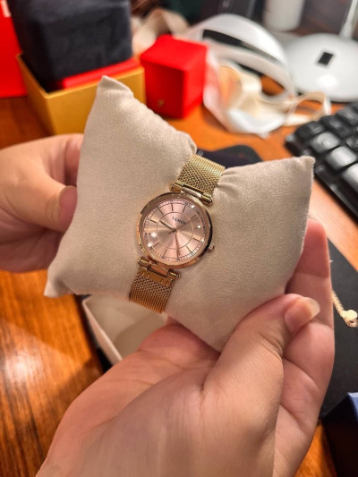 Давно хотела купить часы именно из жёлтого металла, и нашла то, что хотела на сайте магазина. Единственный недостаток - стрелки почти сливаются с циферблатом. Я бы сделала их или чуть потолще, или коричневого (чёрного) цвета.