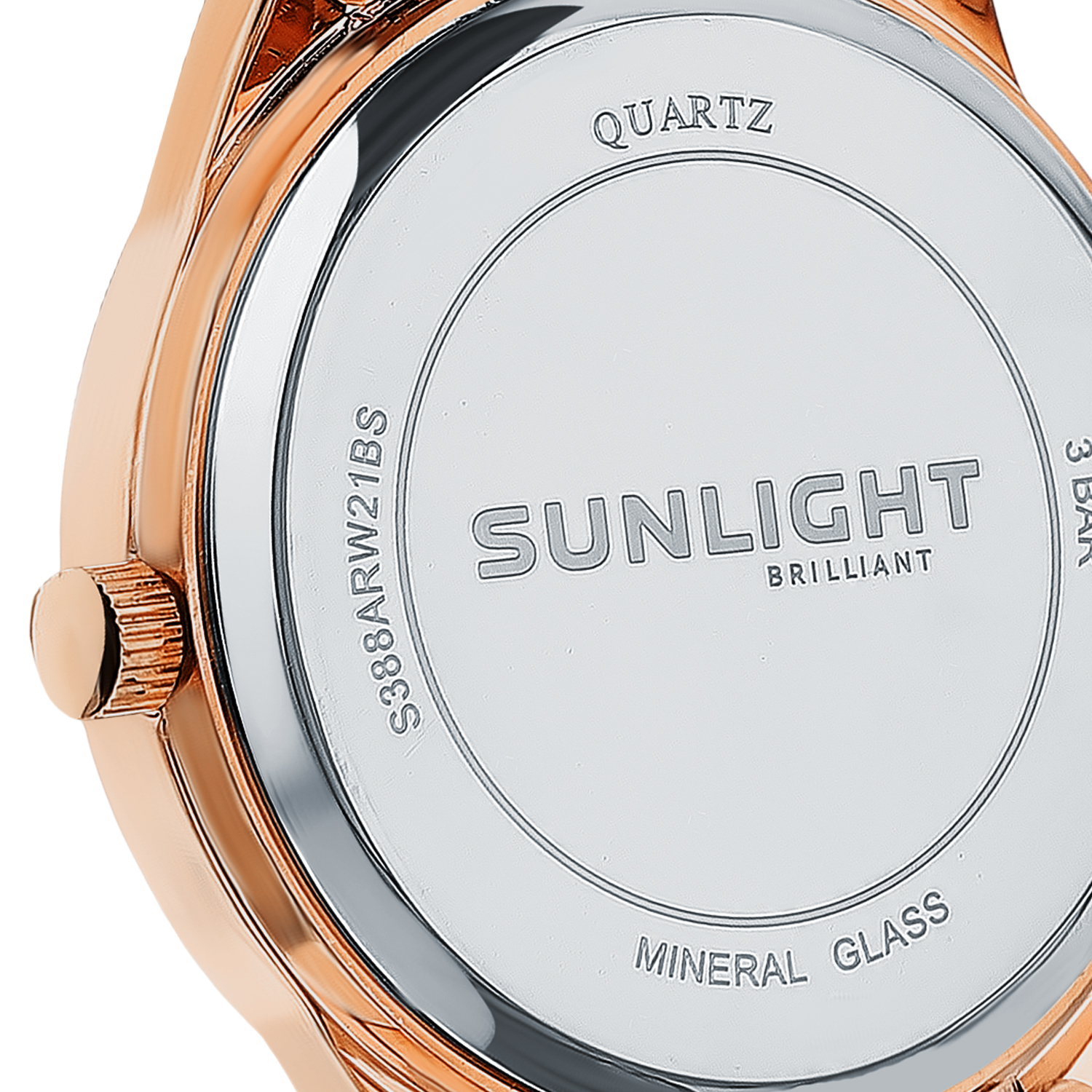 Женские кварцевые наручные часы марки SUNLIGHT в корпусе выполненном из гипоаллергенного сплава ZAMAK 3 с минеральным стеклом. В модели используется Японский механизм SEIKO VX3J. Элемент питания SR920SW. Если на часах стоит маркировка Water Resistant 30 m (3 atm), это означает, что часы защищены от брызг и дождя. Вы можете спокойно мыть руки под краном не опасаясь того, что часы испортятся. Но купаться в них нельзя.