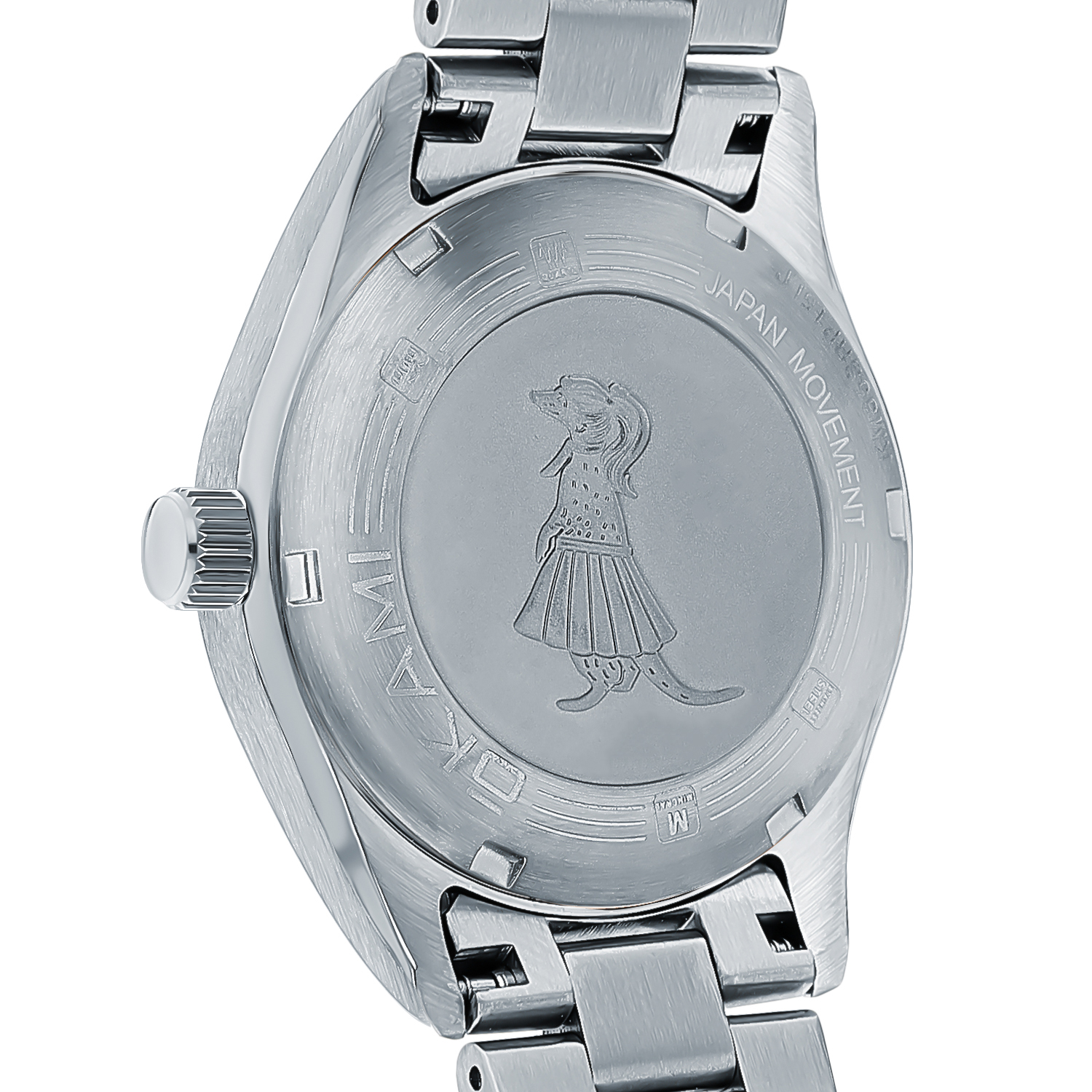 Корпус выполнен из стали, минеральное стекло с антибликом защищает циферблат от внешнего воздействия. Японский кварцевый механизм Miyota 2315 обеспечивает точный ход и оснащен функциями времени в 12 часовом формате, даты и секундной стрелки. Водозащита 10 bar (100 m/330 ft)* позволяет плавать в часах.