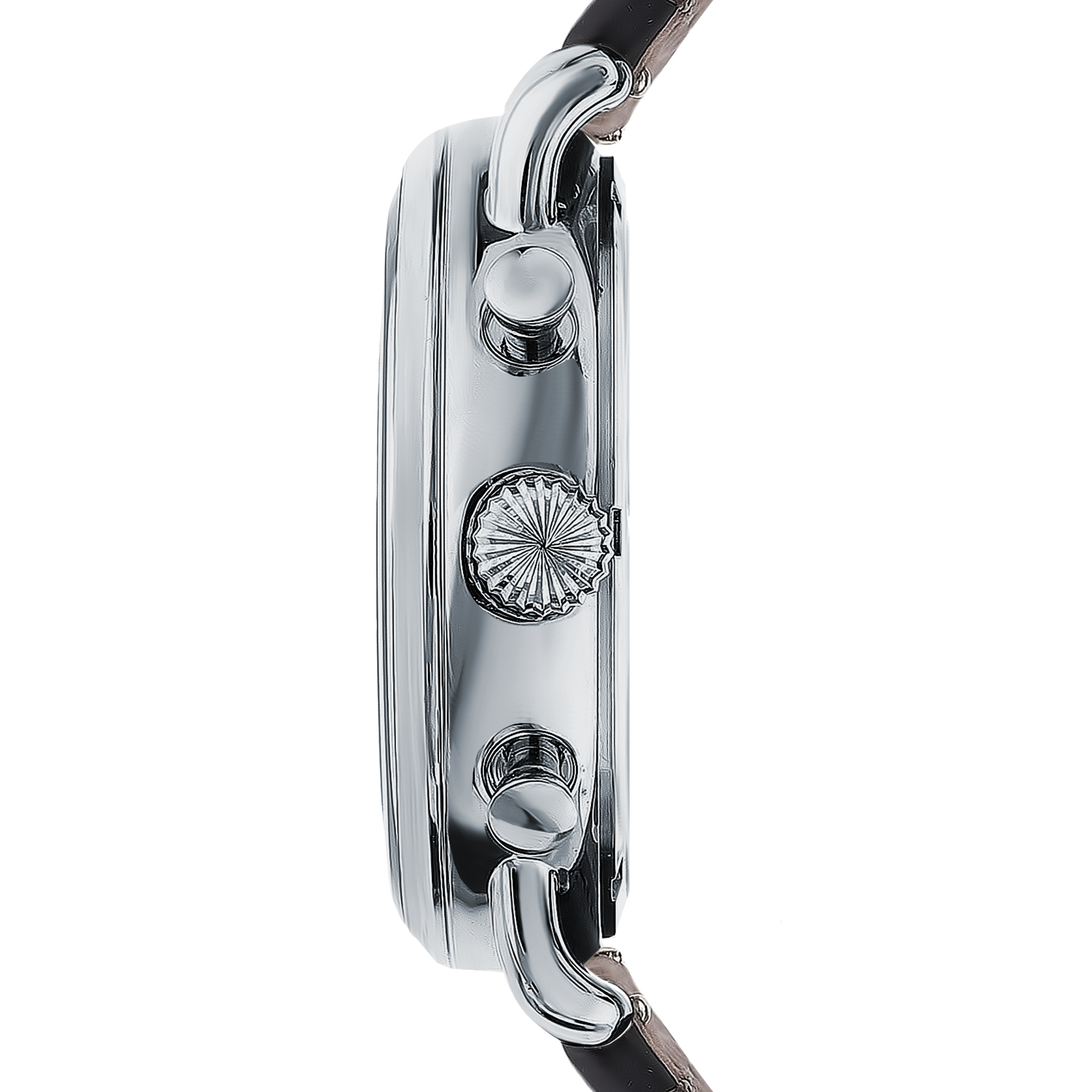 Корпус выполнен из металла*, минеральное стекло с антибликом защищает циферблат от внешнего воздействия. Японский кварцевый механизм Seiko VD31 обеспечивает точный ход и оснащен функциями времени в 12/24 часовом формате, секундной стрелки, даты и хронографа. Водозащита 5 bar (50 m/165 ft) защитит от брызг и дождя.