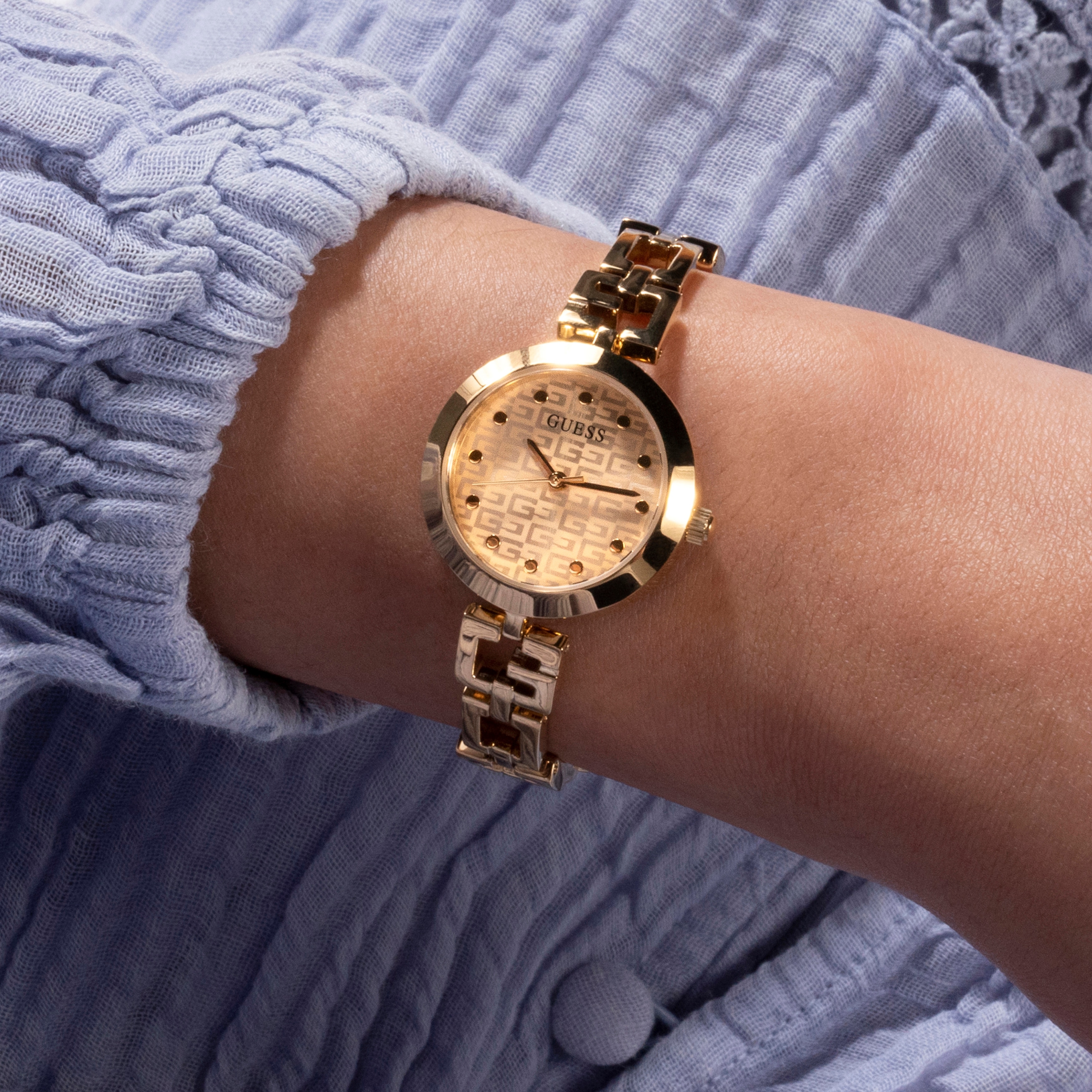 Женские наручные часы GUESS модель GW0549L2 из коллекции GUESS BEJEWELED. Японский кварцевый механизм Y121 SEIKO (TMI) использующий элемент питания SR626SW. Стальной корпус размера 26 мм. Минеральное стекло. Стальной браслет. Водостойкость 3 АТМ (защита от брызг). Остерегайтесь попадания часов в воду. GUESS – лидер в индустрии фешен часов по длительности присутствия на рынке и по ширине коллекции, ежегодно создает более 100 новинок. Компания GUESS Watches, основанная в 1984 году в Лос-Анджелесе (США) как пионер революции, возглавила трансформацию часов из простого инструмента для определения времени в стильный аксессуар. Бренд не боится экспериментировать. Разнообразные формы корпуса, сложно декорированные циферблаты, уникальный дизайн браслетов. GUESS – это про тренды и технологии в мире моды. Это яркие и дизайнерские часы, призванные угодить самым смелым фешн-драйверам и энтузиастам моды по всему миру. Страна-изготовитель: Филиппины. При изготовлении используются только надежные Японские механизмы. ВНИМАНИЕ! Заявленная водостойкость гарантируется только при плотно закрытой или закрученной заводной головке!
