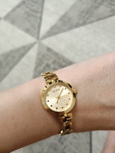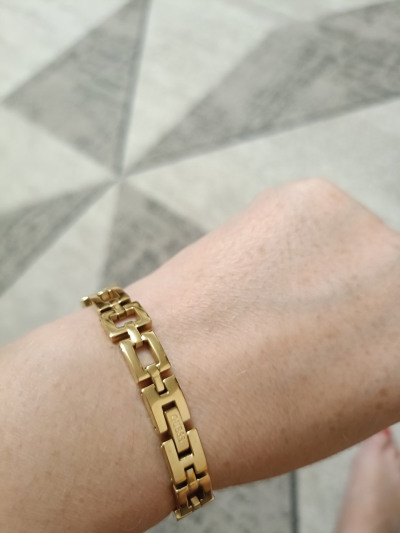 На руке смотреться замечательно! Самостоятельно можно убрать 2 звена, сделать по руке! Стильный браслет! Красивый цвет! Очень довольна часами, рекомендую!
